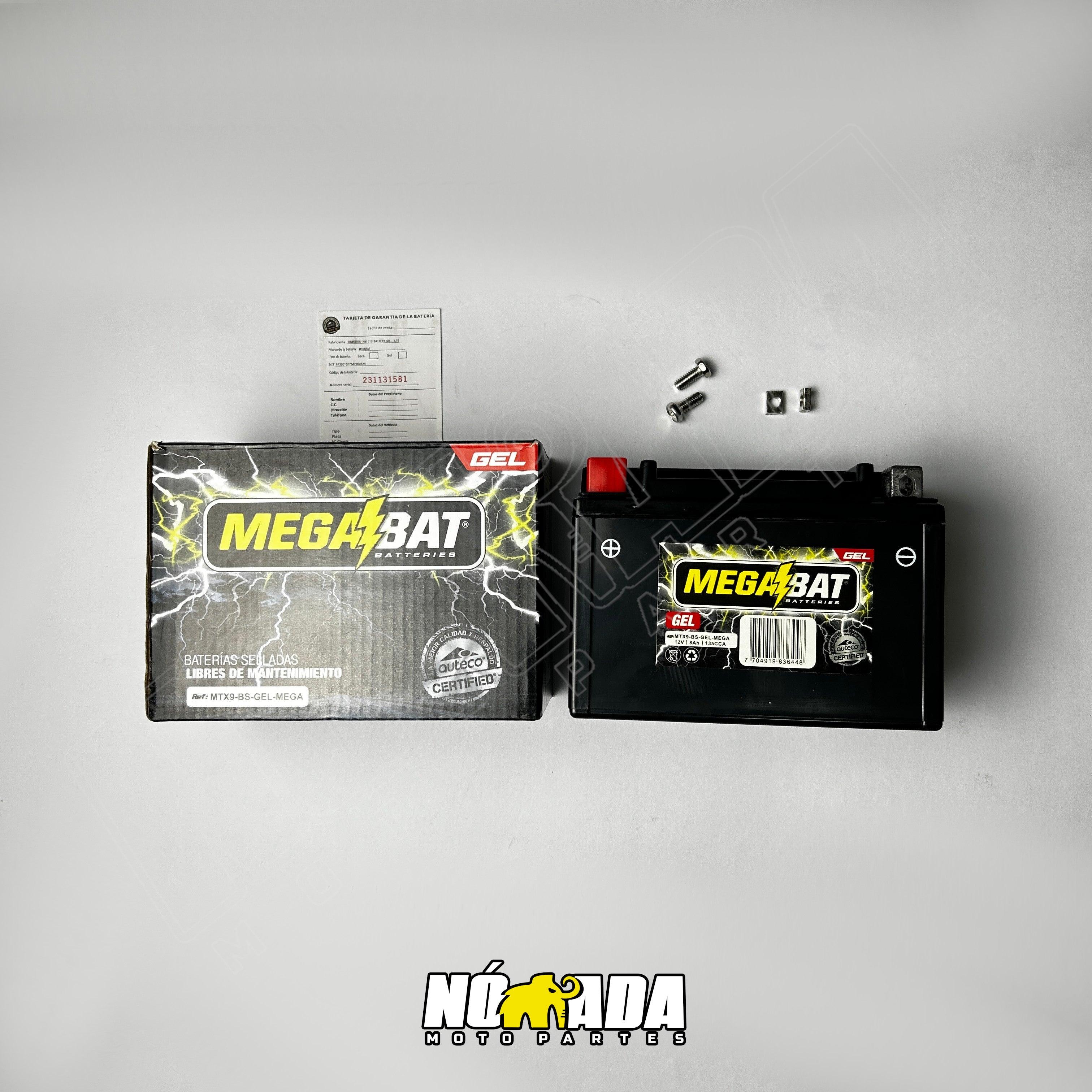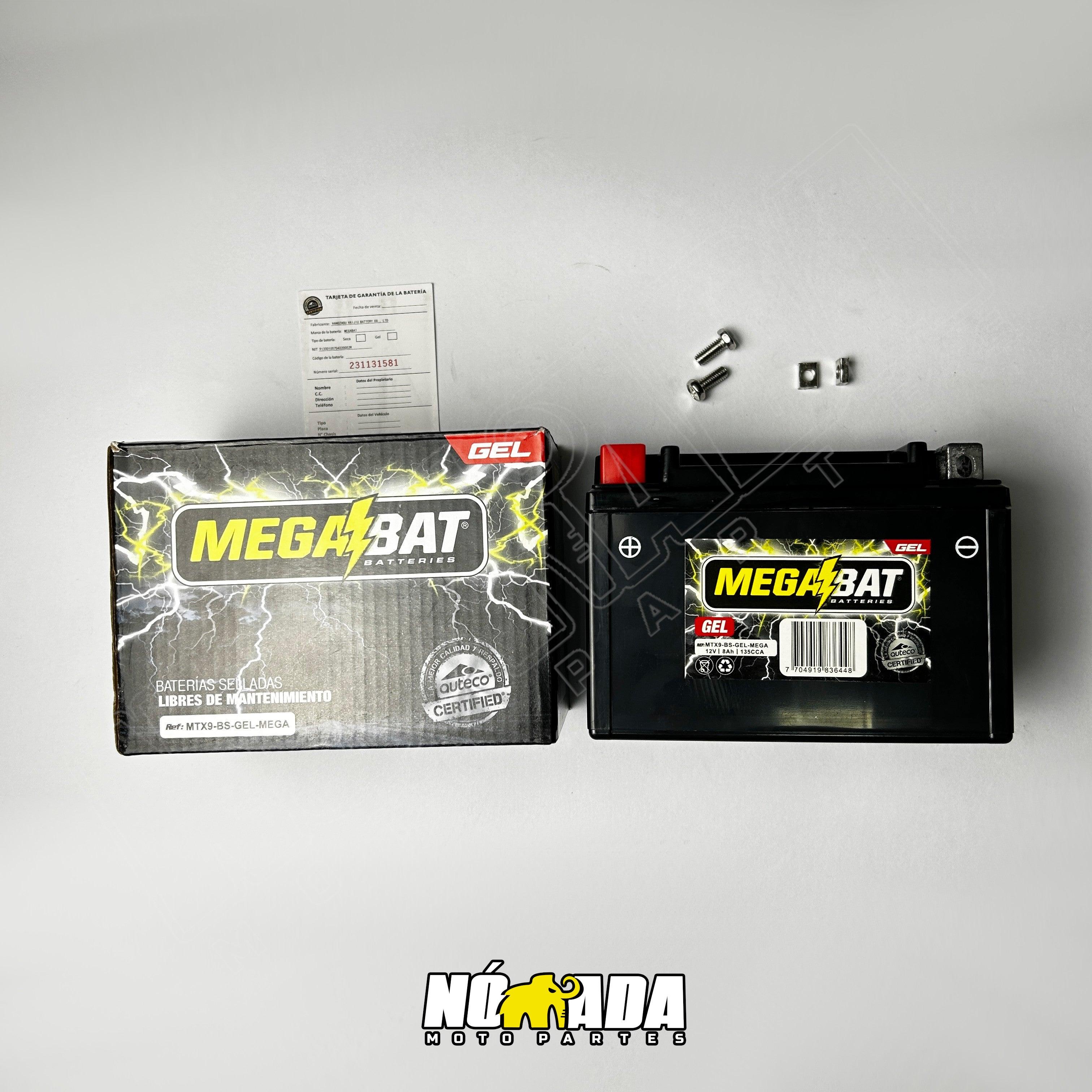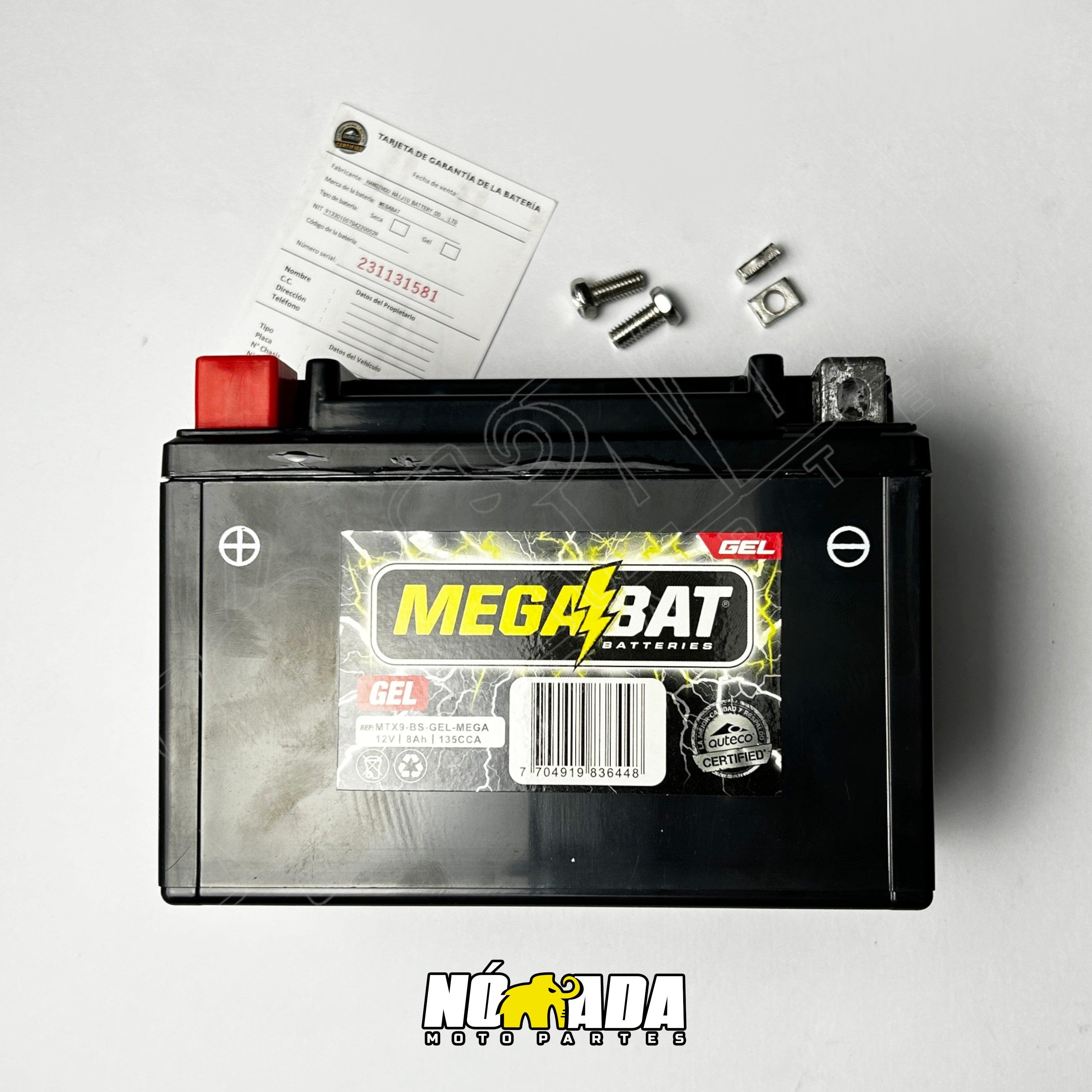 Batería universal Megabat Gel MTX9 BS 12V 8AH. Asegura un rendimiento óptimo y una larga duración con esta batería de alta calidad. Compatible con los modelos BAJAJ: Avenger 220, Pulsar 180- 200- 220, VICTORY: Nitro 151, HONDA: Cm 200m, PIAGGIO; PX 150, TVS: Apache Rrt 160-160 4V- 180 200, Rockz, SIGMA: SG100T.